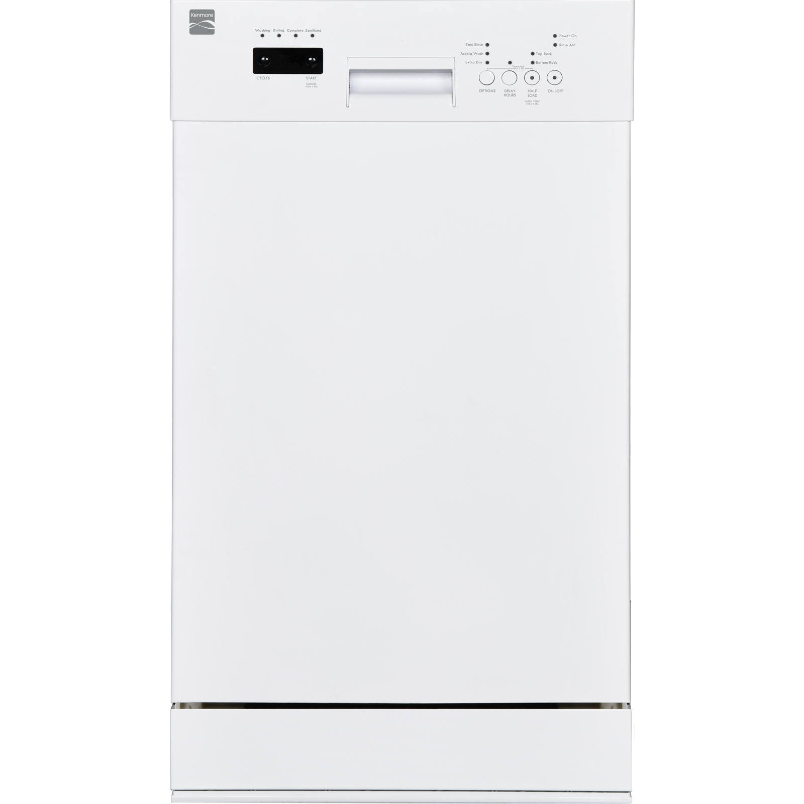 This stylish Kenmore 18\" built-In dishwasher works hard in the background, making sure dishes get clean. UltraWash® Plus technology provides more cleaning coverage and eliminates stuck-on food while the TurboDry™ system helps eliminate spots. The 45 dBA dishwasher is not only quiet, but holds 10 place settings and features a removable third rack to make sure everything fits just right.