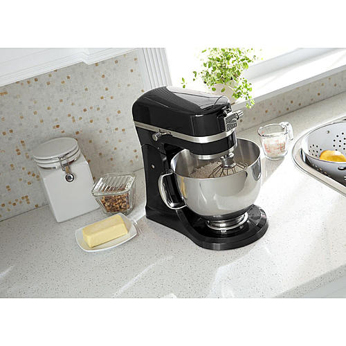 Whether you're whipping up cookies, appetizers or sauce, this Kenmore Elite 5-quart black stand mixer is the secret to leave everyone wondering just how you do it. This mixer combines unique rotating motions, a versatile selection of tools and a unique lighted view, resulting in tasty creations. A 400W electric motor is powerful enough to handle a variety of foods, from thick multigrain dough to decadent frosting.