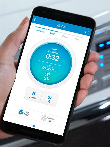 Kenmore smart washers connect with your smartphone to put you in control — allowing you to activate and monitor operation anytime and anywhere.