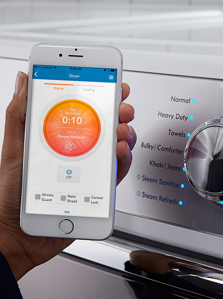 Kenmore smart dryers connect with your smartphone to put you in control — allowing you to activate and monitor operation anytime and anywhere.